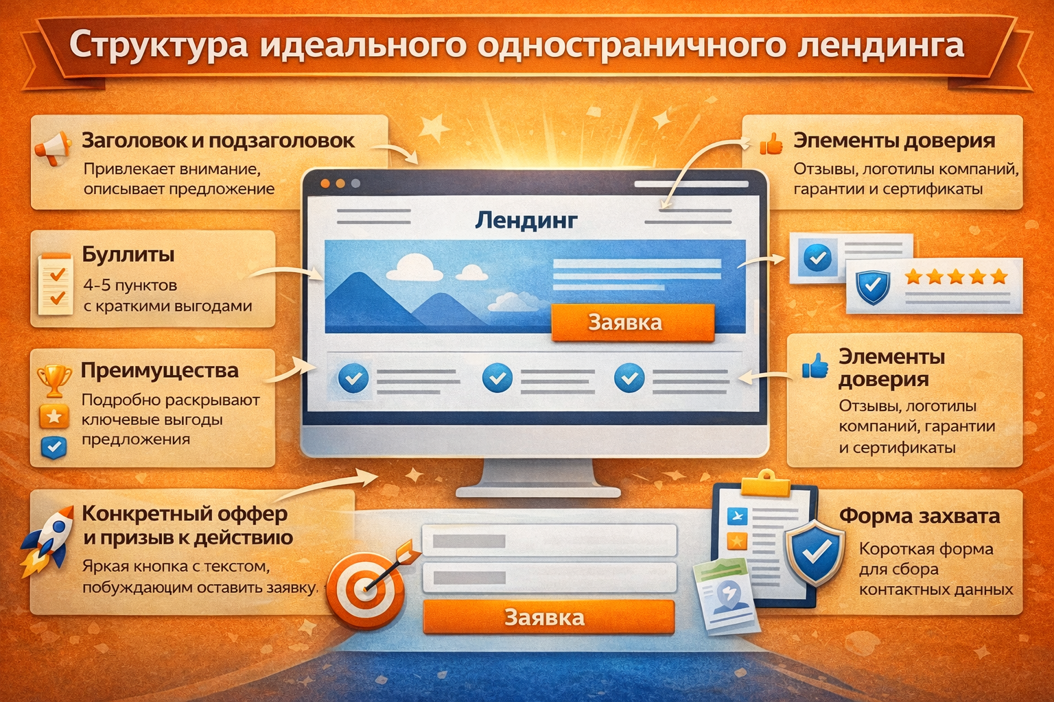 Оставьте заявку, и мы разработаем одностраничный сайт под ключ: от структуры до настройки рекламы.