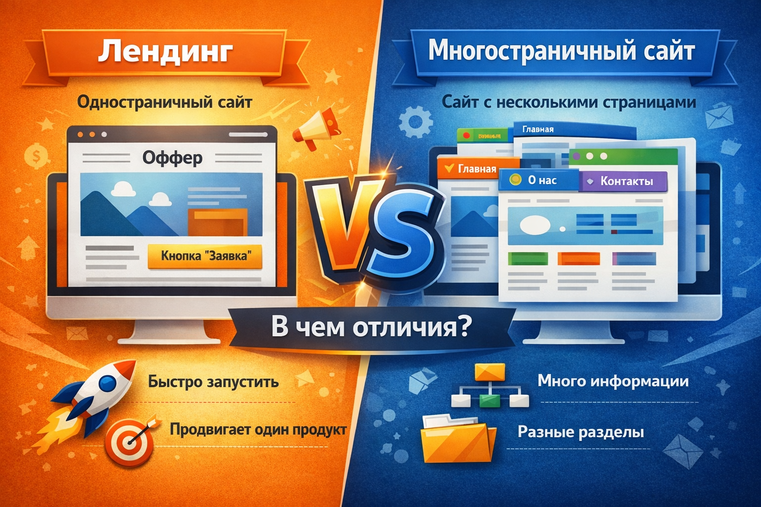 Аналогия: Многостраничник — это супермаркет, где можно ходить между рядами и выбирать. Одностраничный лендинг — это прилавок с дегустацией одного конкретного продукта, который вам очень настойчиво, но вежливо предлагают попробовать.